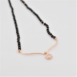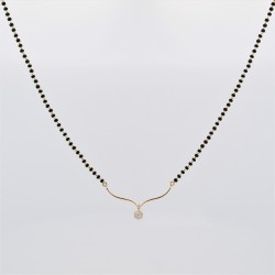 A beautifully simple and delicate Diamond pendant on a mangalsutra beaded chain. Crafted in 18ct Yellow Gold and designed by us, with a very fine curved lines it's perfect as a modern mangalsutra.