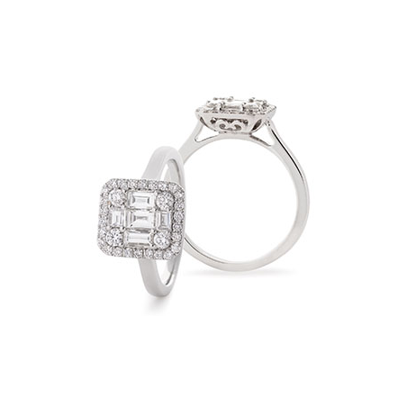 All Diamonds are a minimum of G/Si1 Clarity and the ring comes with a certificate.