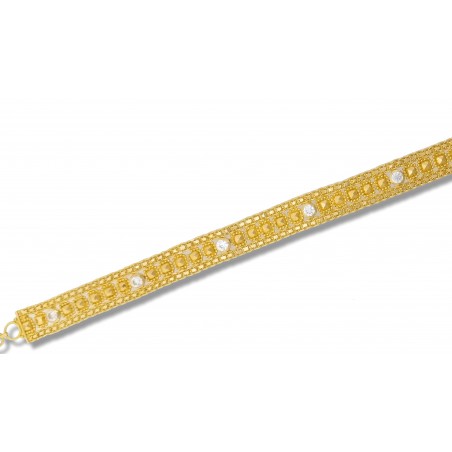 Fully hallmarked ladies bracelet in 22ct gold. Flat straight bracelet with filigree design and C/Z set stones. 7 inches long.