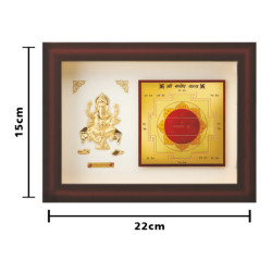 The gold foil Ganesh Ji with Yantra frame showcases the divine presence of Lord Ganesha, accompanied by the sacred Yantra symbol. With its intricate design and shimmering golden accents, it embodies wisdom, prosperity, and obstacle removal. This art piece symbolizes blessings, success, and the divine energy of Lord Ganesha, infusing your space with auspiciousness and spiritual protection. Embrace its radiance and invite the presence of Lord Ganesha into your surroundings.