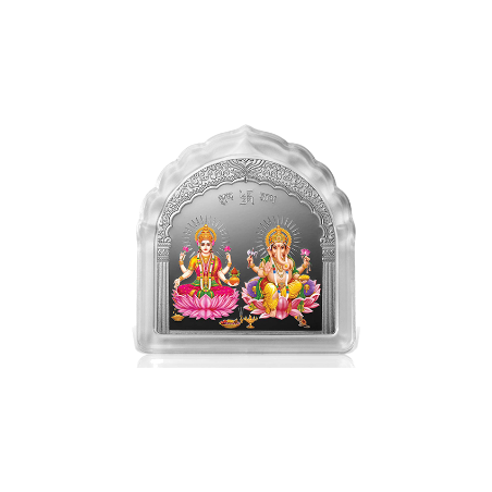 Tradition meets Innovation in this unique pure 999.9 silver stylized ingot featuring Lord Ganesha and Goddess Laxmi, in brilliant color. The reverse features the auspicious ‘Shree Yantra’, ‘Shree Ganesh Yantra’, and ‘Shlokas’ in Sanskrit. The coin is delivered in transparent packaging that safeguards, an exceptional product from any mishandling. These artful, precious metal treasures are secured within protective, transparent capsules and presented in elegant gift boxes