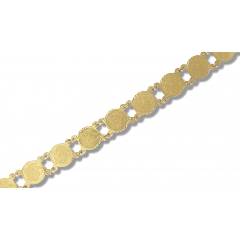 Fully hallmarked ladies bracelet in 22ct gold. Double linked large coin "laxmi" bracelet. 7 inches long.