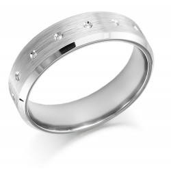 Flat wedding band ith multiple grooved lines for something that is a little different. Available in multiple idths.