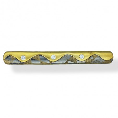 Stylish tie clip designed with enamel on 22ct gold and finished with high quality C/Z crystals. Strong spring clip on the back holds it firmly in place.