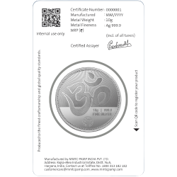 Get the beautiful and auspicious Ganesh Lakshmi 10g pure silver coin to bring home purest blessings from these venerated deities from Hindu mythology. As the divine incarnation of physical beauty, fertility, luxury, and prosperity, Goddess Lakshmi is portrayed with her four arms that together represent Cosmic Omnipotence, as well as perfection and freedom from limitations. MMTC-PAMP 10g Lakshmi Ganesh silver coin is in 999.9 Purity. We see two hands hold the Lotus flowers, reflecting beauty, perfection, and rebirth, while another offers coins as an affirmation of enduring wealth, and finally, one open palm assures safety and protection. Lord Ganesha bestows blessings of prosperity upon his devotees, but also, represents his power to remove obstacles from the paths of humankind.