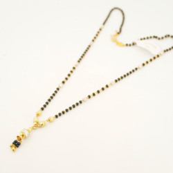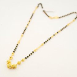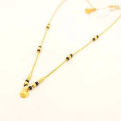 Fully Halmarked 22ct gold mangalsutra necklace. Gold capped 3mm black crystal beads attach to pear drop shaped pendant studed with white C/Z stones and Blue Sapphire coloured stones. A beautiful mangalsutra that can be easily worn everyday. Can be adjusted to any length, just let us know the length you would prefer and we can adjust it before posting.