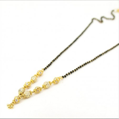Fully Halmarked 22ct gold mangalsutra necklace. 3mm Jet black beads form a simple chain to this gorgeous mangalsutra which is then finished by gold C/Z beads and 2-tone beads. Can be adjusted to any length, just let us know the length you would prefer and we can adjust it before posting.