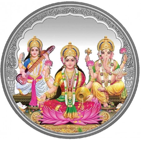 10 grams Trigod Saraswati Lakshmi Ganesh Coloured Silver Coin - 1