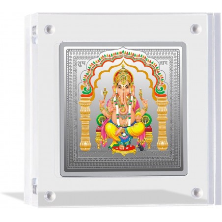 Stunning Ganesh picture minted in a pure silver 50 gram bar with outstanding detail. Beautifully framed in a magnetic acrylic frame and comes packed in a gift box and box sleeve. Makes a perfect gift for any occasion.